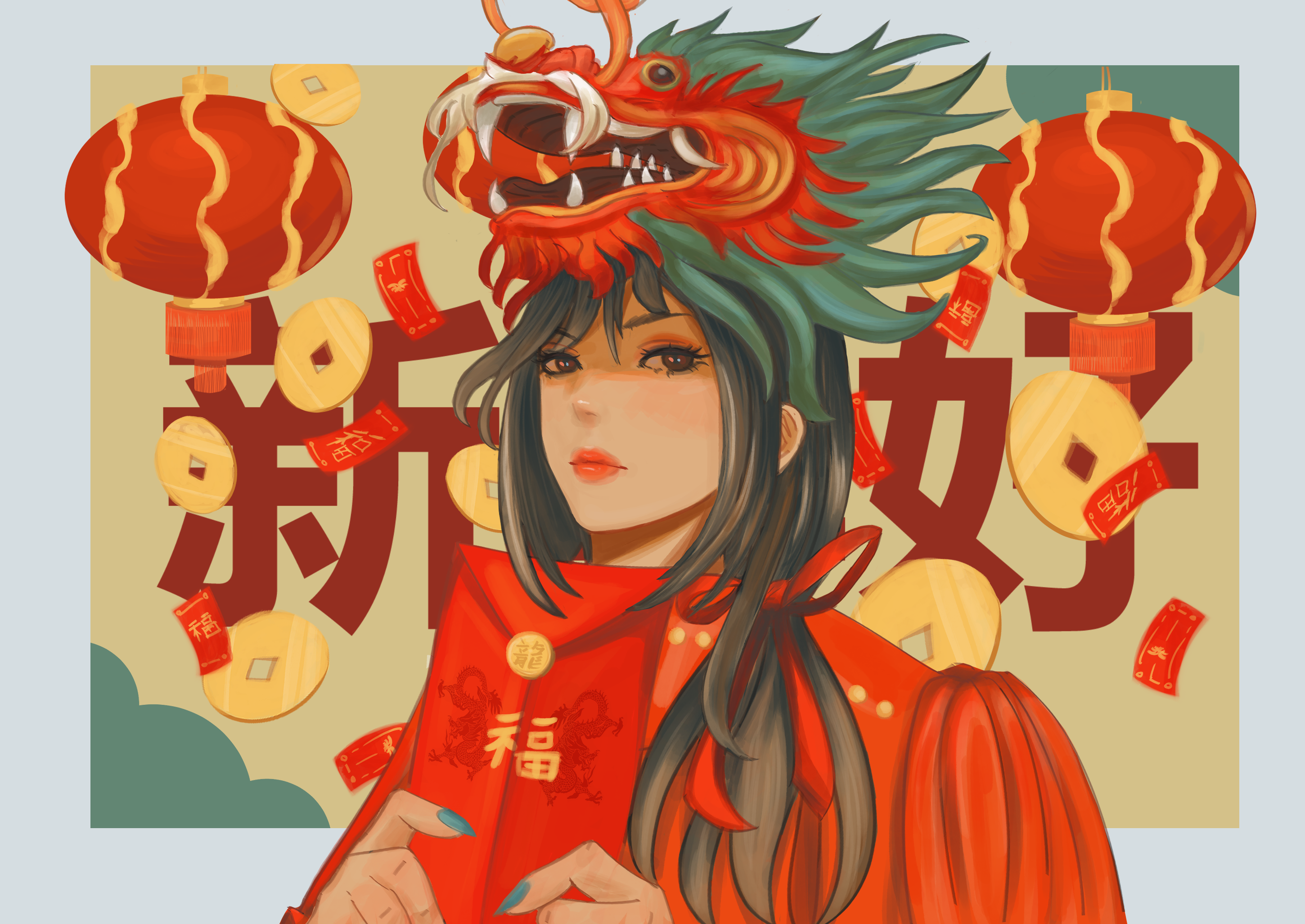 Art inspired by the 2024 Lunar New Year zodiac and celebration.